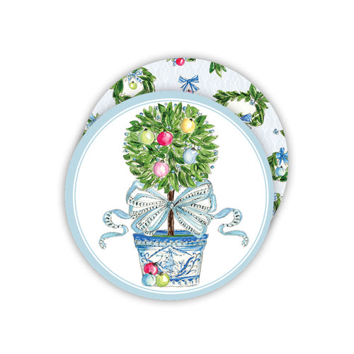 • Ornament Topiary with Blue Bow Round Coasters