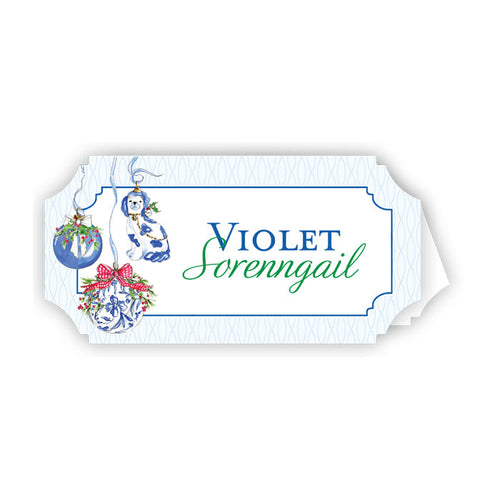 • Blue Chinoiserie Ornament Hanging Die-Cut Place Cards