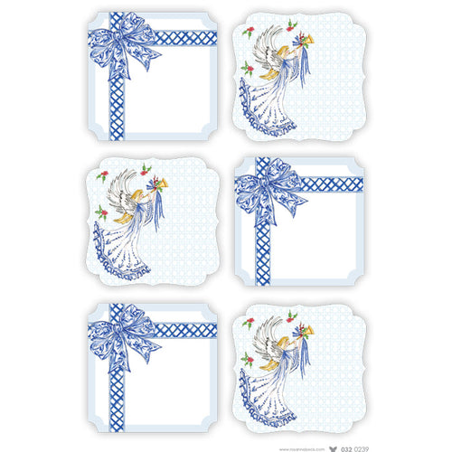 • Blue Chinoiserie Bow & Angel Scalloped Gift Tag Set