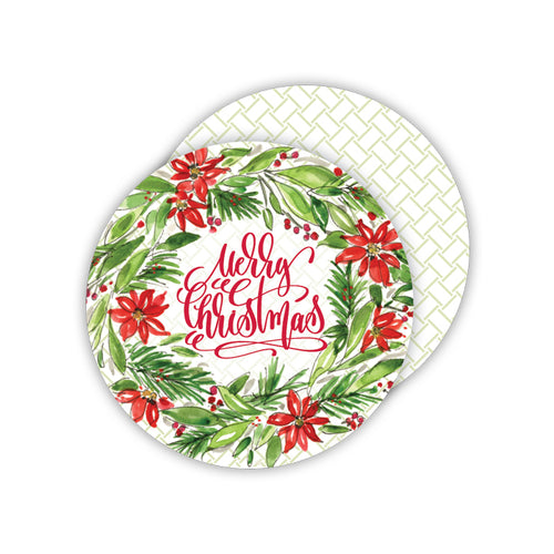 • Merry Christmas Poinsettia Wreath Paper Coasters