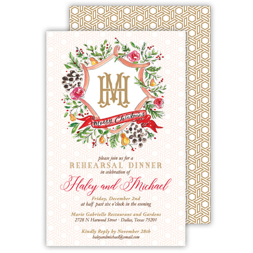 • Large Green Wreath Large Flat Invitation