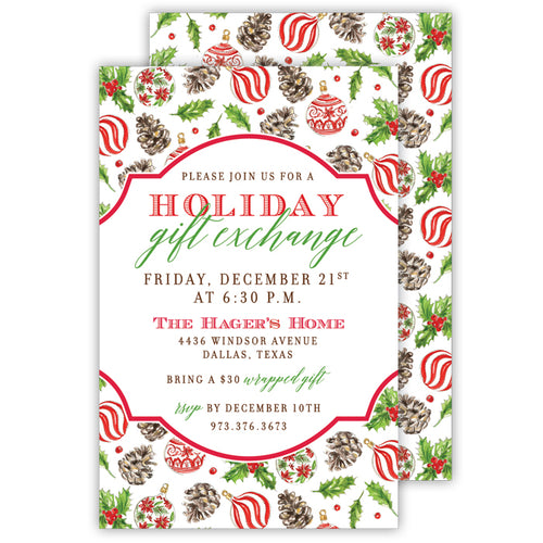 • Holly Ornament Repeat Pattern Large Flat Invitation