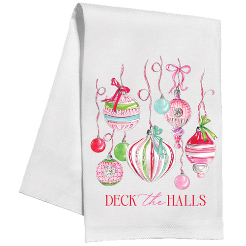 • Deck The Halls Pink Vintage Hanging Ornaments Kitchen Towel